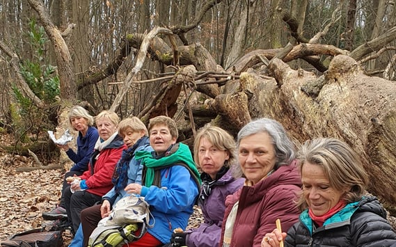 Une rando assez diversifiée parcs, ville, forêts. Une pause déjeuner bien agréable grâce à un géant accueillant (mais abattu) qui nous permit de nous asseoir. Des côtes et des descentes, 400 mètres de dénivelé. Tout le monde en forme à l'arrivée. Bravo!