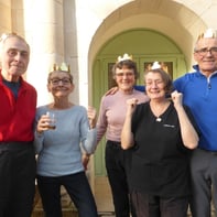Bossapas 25 - en deux groupes , Josiane, Jacques, Joëlle B., Brigitte C. avec Marie Pierre; Leila, Valérie, avec Peggy