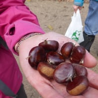 Les châtaignes sont petites cette année mais la récolte a été suffisante (7 kg) pour une bonne grillée. On a même trouvé des champignons (coulemelles). Ce qui nous a permis de réviser les connaissances acquises lors de la semaine précédente.