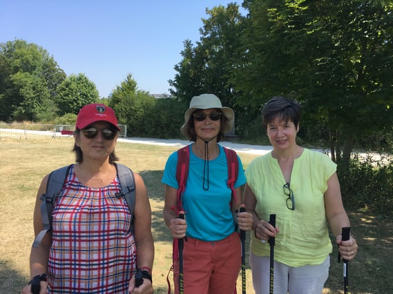 Avec Peggy, trois nouvelles élèves (Sylvie, Brigitte et Laura) ont pratiqué et visiblement apprécié la marche nordique.